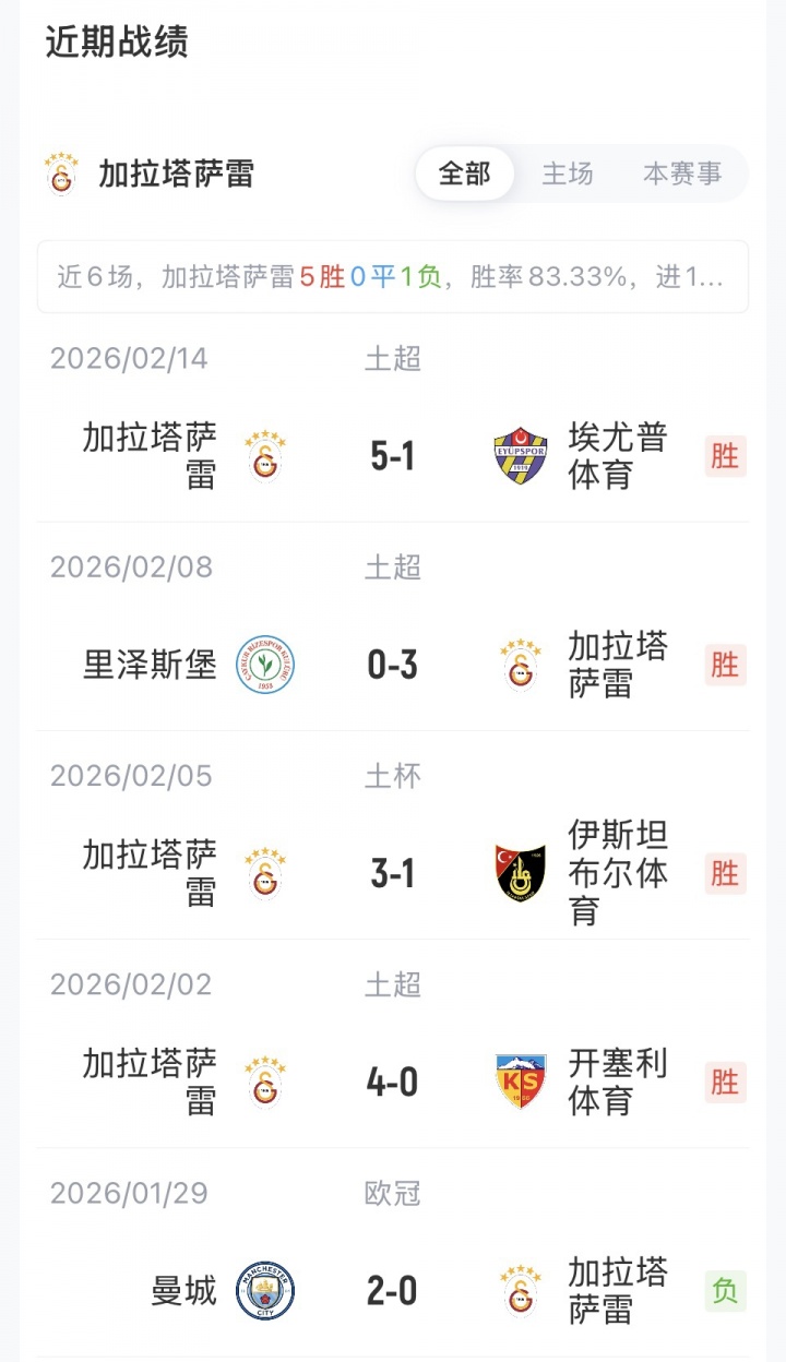 加拉塔萨雷首发:1-恰基尔、42-巴尔达克彻、6-达文森·桑切斯、4-雅各布斯、7-绍洛伊、34-托雷拉、8-萨拉、11-阿克金、53-伊尔马兹、77-诺阿·朗、45-奥斯梅恩
