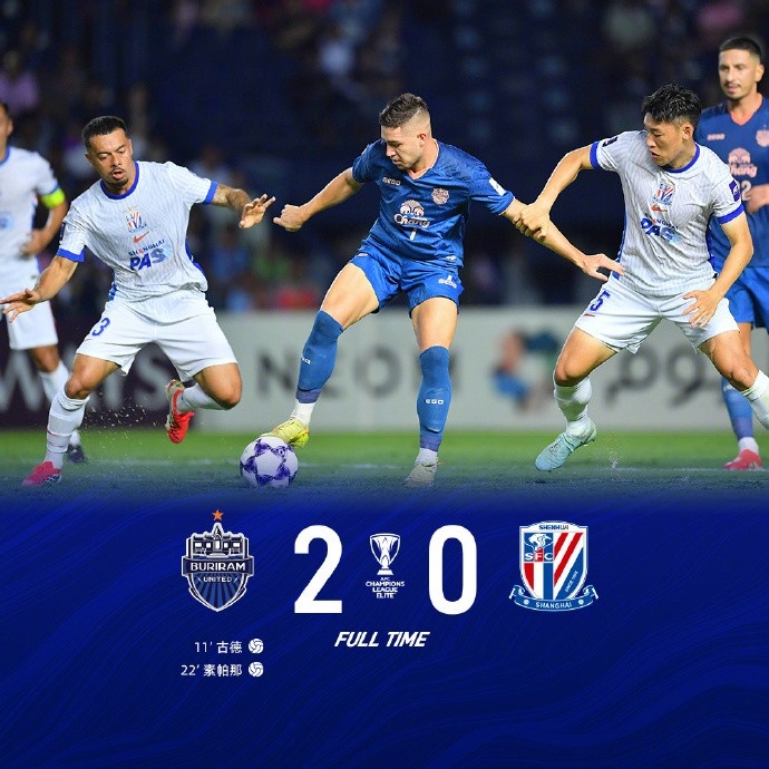 北京时间2月17日20:15,2025/26亚冠精英联赛第8轮上海申花客场挑战武里南联的比赛在武里南体育场进行。第10分钟,武里南联利用角球取得领先。第22分钟,素帕那抓住角球二点机会扩大领先优势。第24分钟,盖伊接米内罗横传禁区内打门被封堵。第30分钟,金顺凯前插打门擦柱而出。第34分钟,拉唐两黄变一红被罚出场。易边再战, 第50分钟,陈晋一突破传中,盖伊在干扰下抢点未果。第73分钟,吴曦头球攻门击中横梁。最终上海申花客场0-2告负,结束2025/26亚冠精英联赛征程。